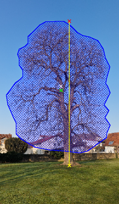 Hier wurde im April 2023 eine Baumuntersuchung mittels Schalltomographie an einer Rosskastanie zwecks Ermittlung der Bruchsicherheit durchgeführt.